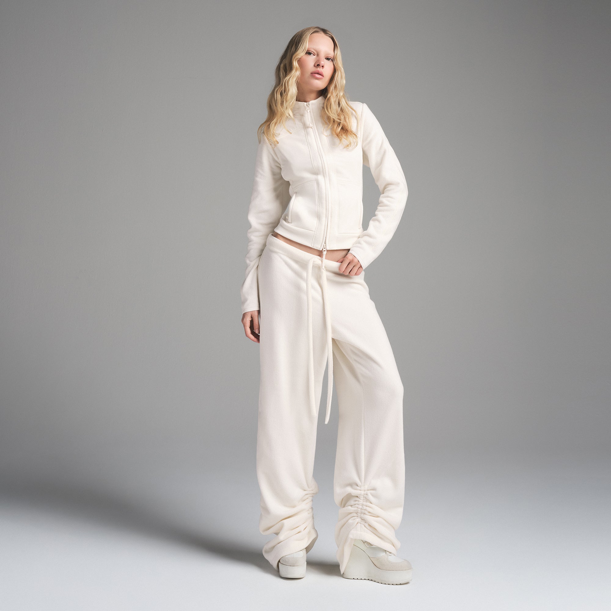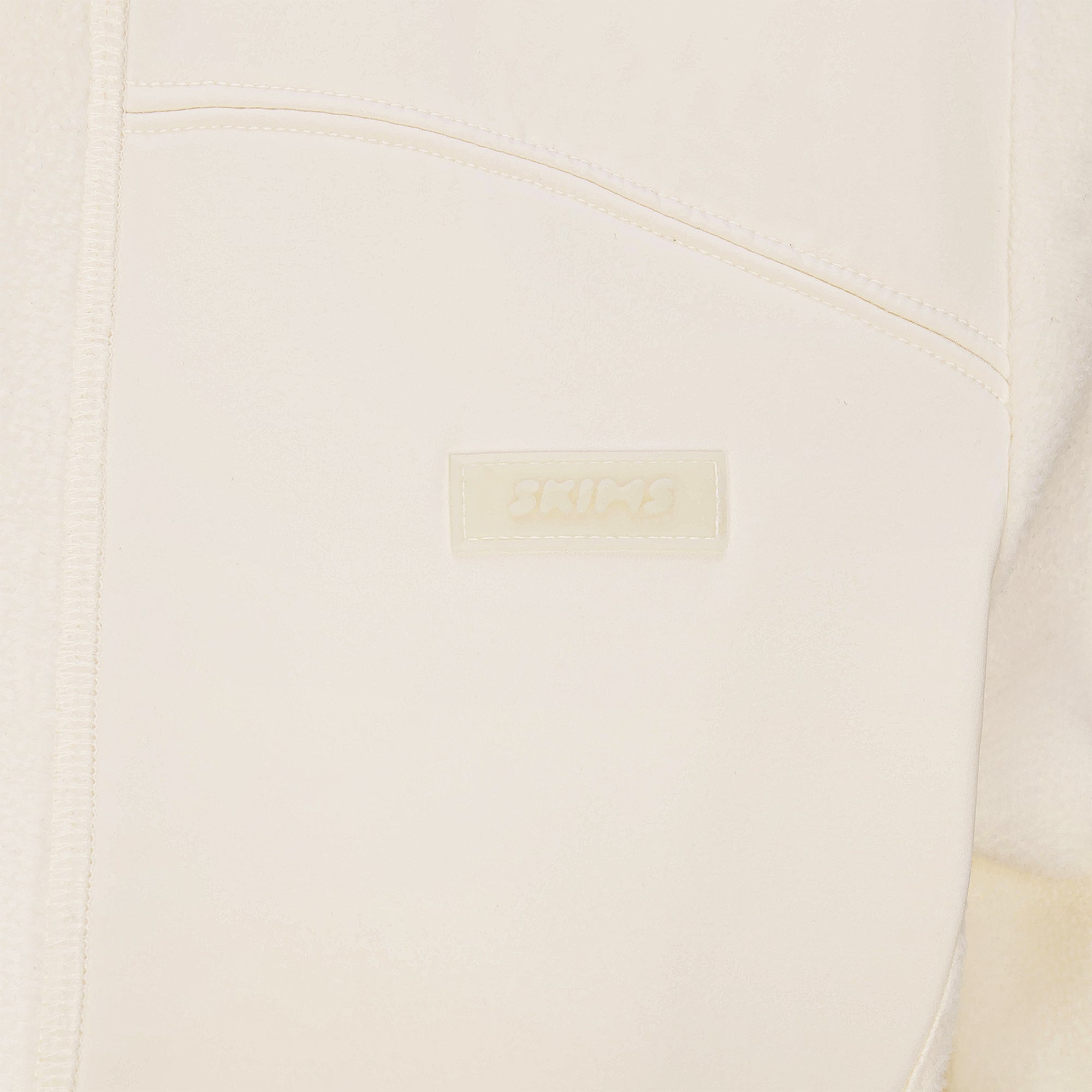 Cozy, cool, and collected. Featuring our midweight polar fleece and contrast panels, this fitted zip-up brings plush softness and sporty edge to your winter uniform. Features a sleek mock neck, relaxed sleeves, and cozy side pockets for ultimate comfort. Finished with a silicone SKIMS logo patch at the chest, this style hits below the natural waist and fits true to size.