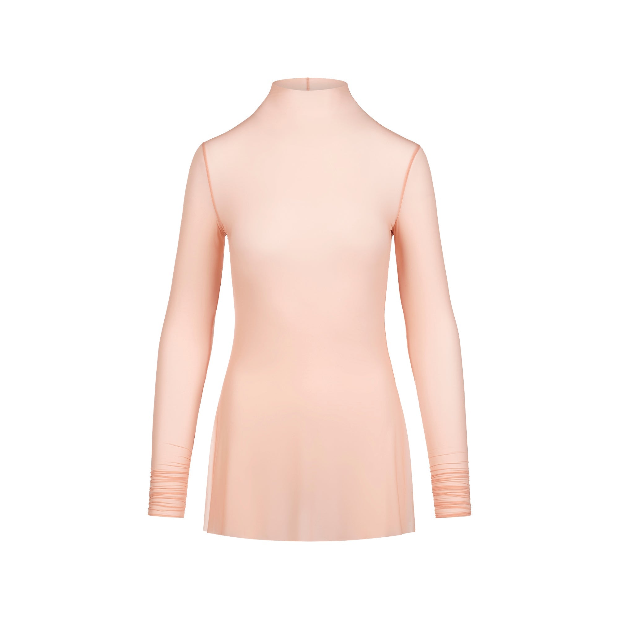 Make a sheer, sexy statement in this long sleeve mock neck tunic. Made in our lightweight, stretchy Milky Sheer fabric, this style features flattering side slits and raw cut details. Fits true to size. Layer with coordinating Fits Everybody styles for a tonal look.