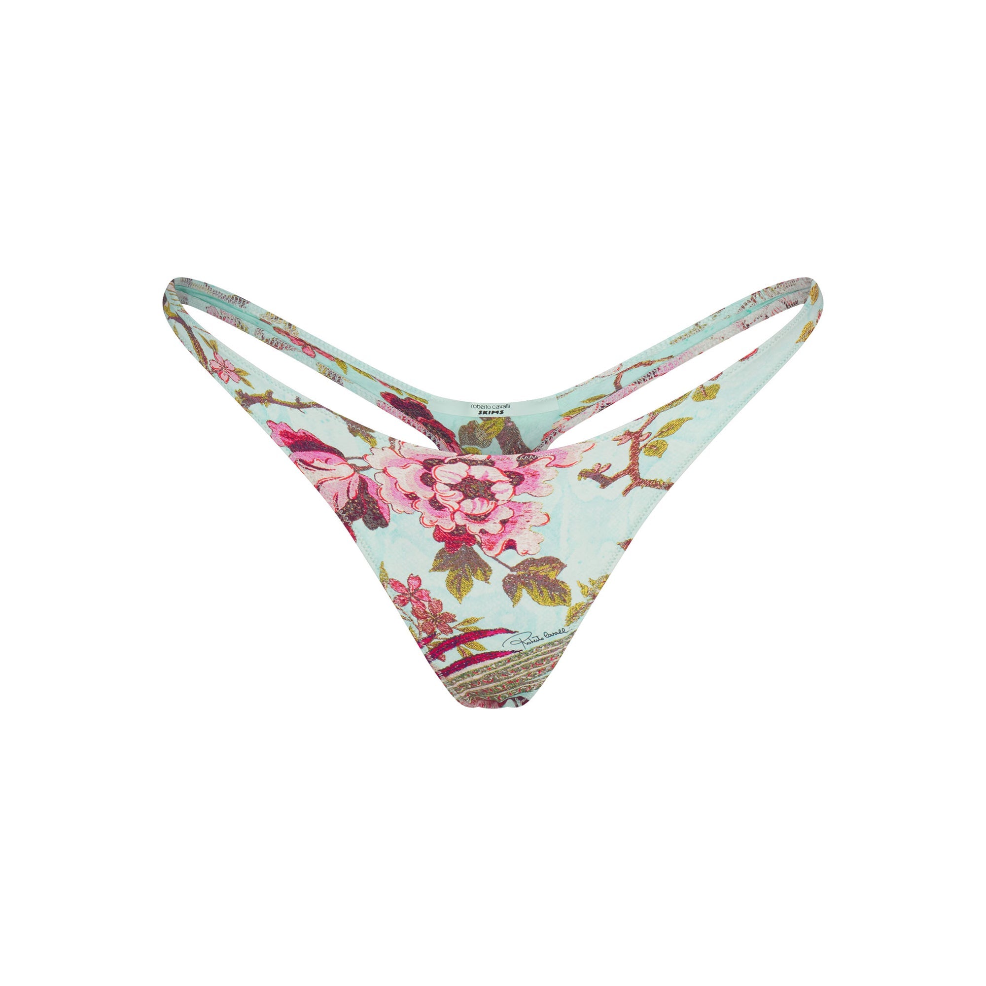 The boldest bikini bottom. Marked by Italian glamour in Roberto Cavalli’s bold animal prints, this swim style features a sexy dipped front and minimal thong back coverage. Fits true to size. Part of the limited edition Roberto Cavalli x SKIMS Collection.