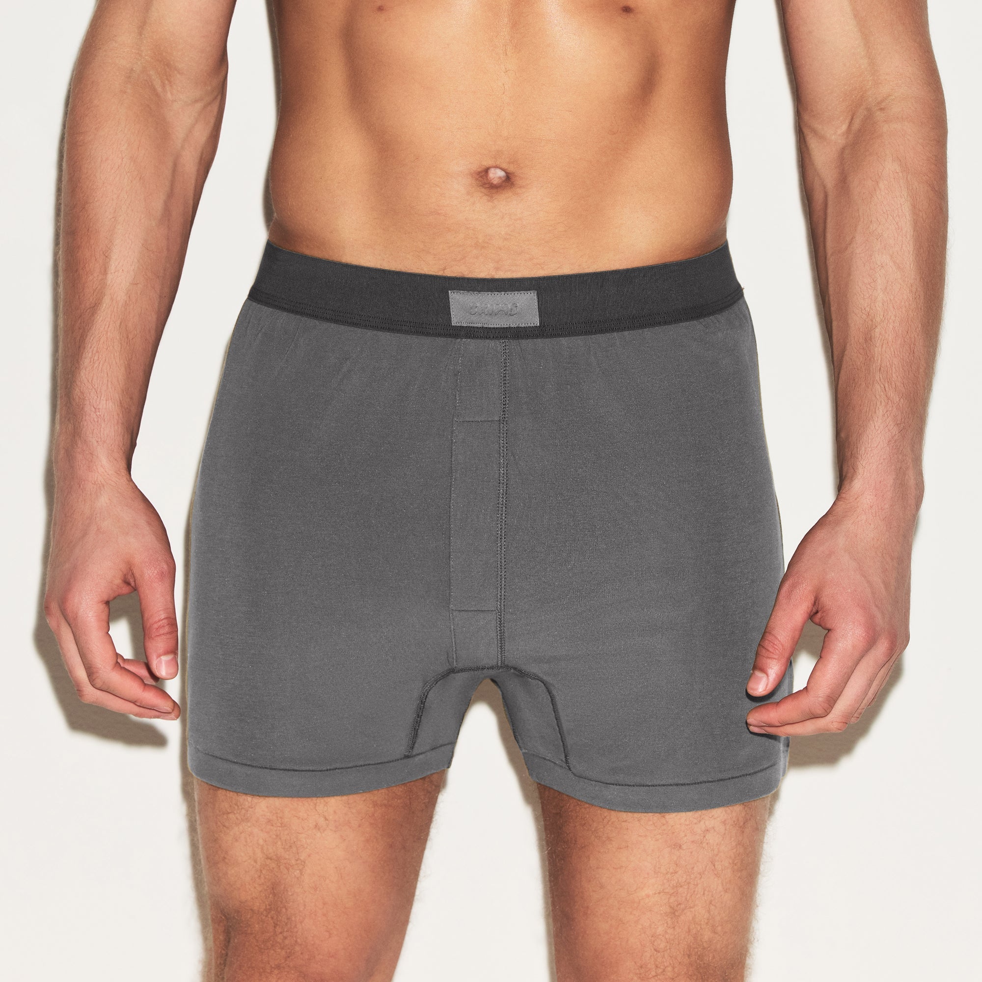 Not your average knit boxer. Engineered with our soft, breathable cotton with built-in recovery, this knit boxer brings you the best in comfort, now in a knit boxer 3-pack. Features a functional fly opening with hidden button and SKIMS logo at the soft waistband. Fits true to size.