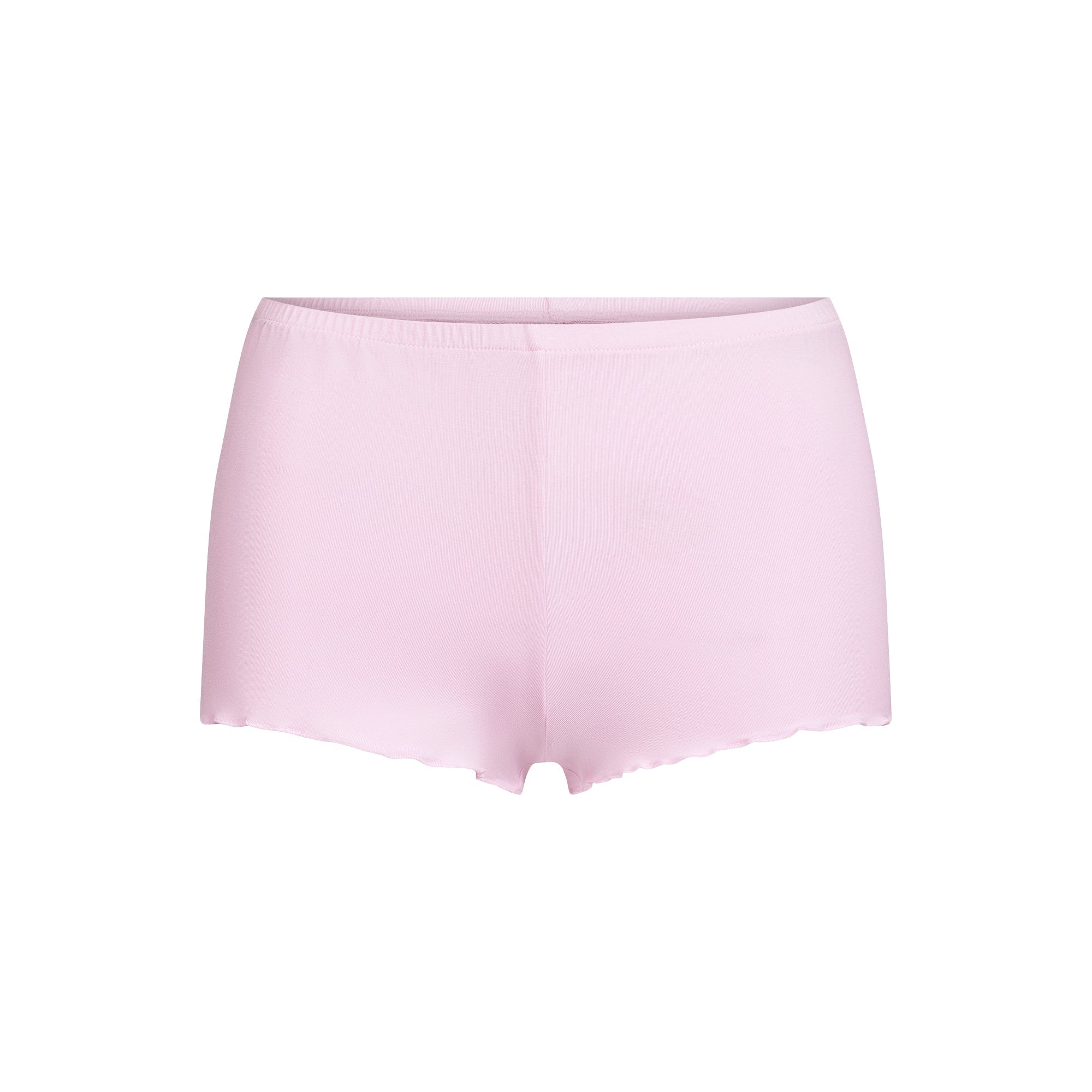 Feels like a dream. Designed with a triangle neckline and feminine ruching at the center front, this sweet set is adorned with frilly lettuce edge details at the hems. Includes an elastic waistband and adjustable straps for support and comfort.