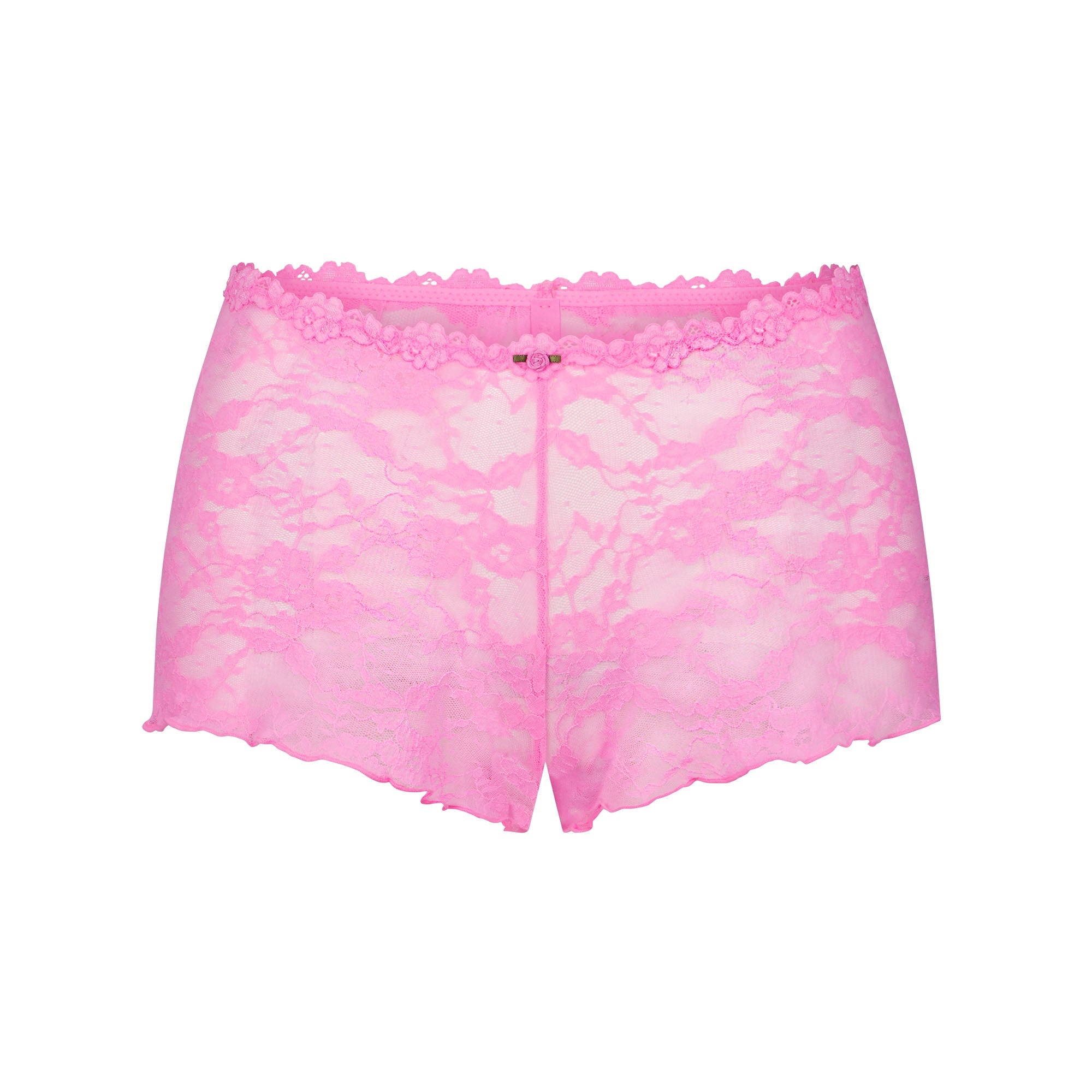 Slip into something naughty and nice. Made from our signature stretch lace with floral details, this festive lingerie set features a semi-sheer cami adorned with alluring rosette details and a playful contrast lettuce edge. Paired with a matching mid-rise boy short, it’s the sexiest holiday treat for yourself.