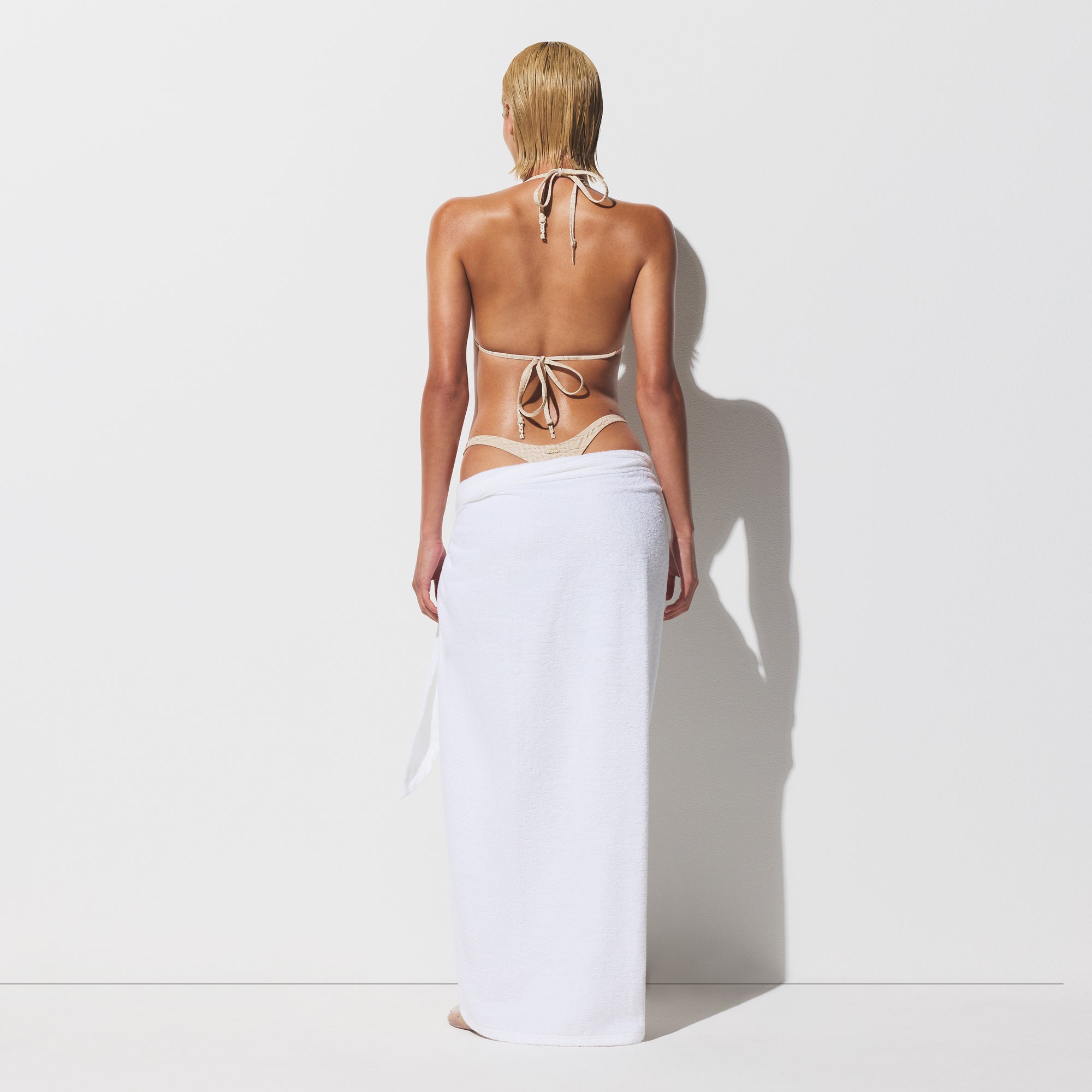 The sexiest sarong. Flattering and stylish in the softest midweight terry, this long sarong is the finishing touch to a stunning SKIMS Swim look. Features a self-tie for adjustability and fits true to size.