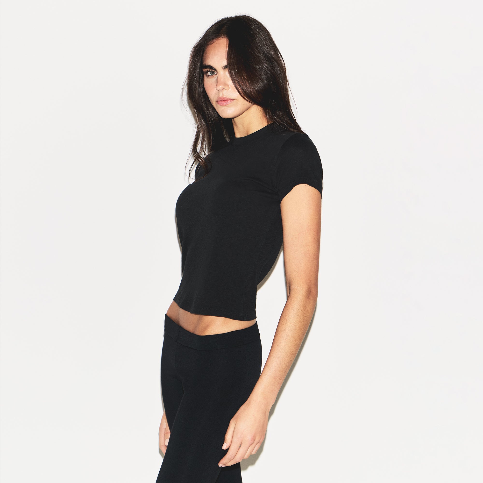 Suits you to a tee. With its cool, worn-in look and feel, this airy short sleeve elevates your comfort whether you’re hanging out or heading out. Made with the softest 100% cotton in a classic fit that hits at the natural waist and features ribbed details at the crew neck. Fits true to size.
